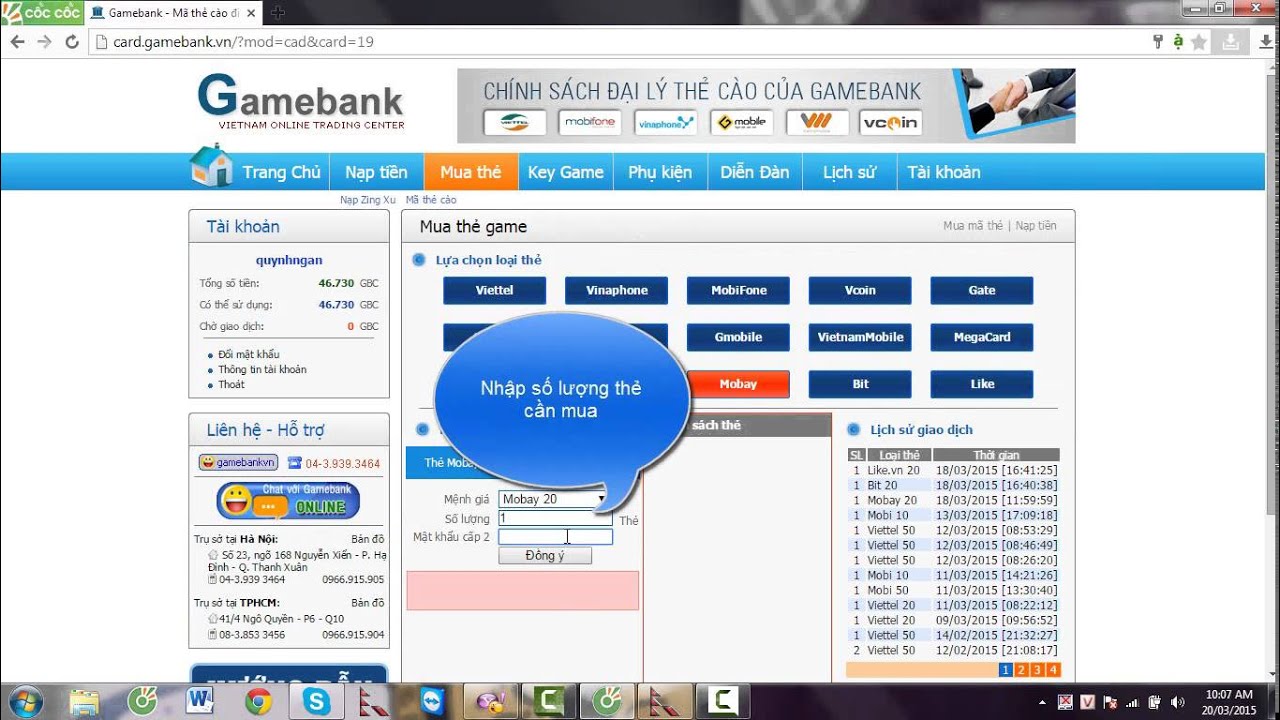 Hướng dẫn mua thẻ game online thanh toán OnecomND - Ngày Phụ Nữ VN - Ngày Nhà Giáo VN. Đối tác Zing card - Zing xu Vcoin - VTC - Audition Vinaphone Mobifone Viettel Garena Oncash Thẻ Mobay Item game. Quà tặng Chocolate ... View Document